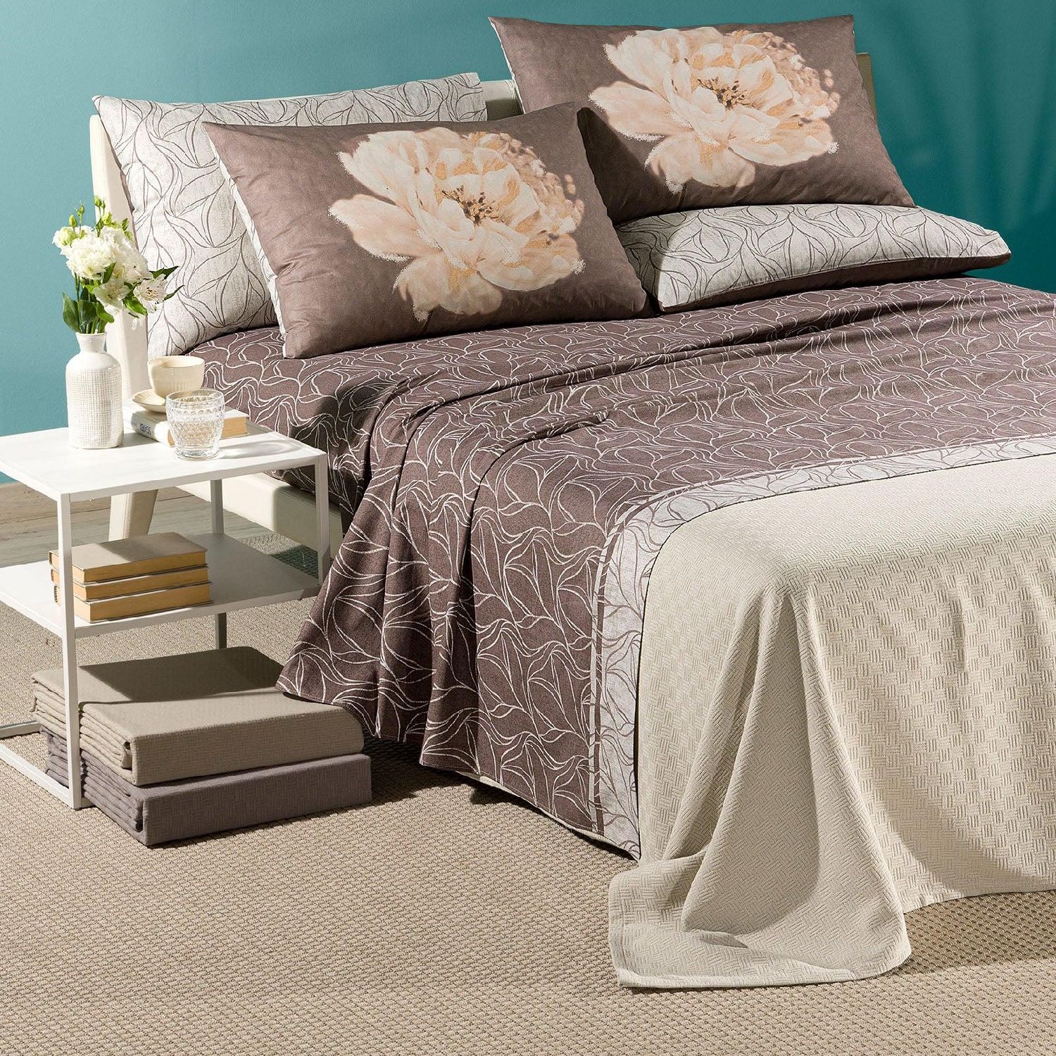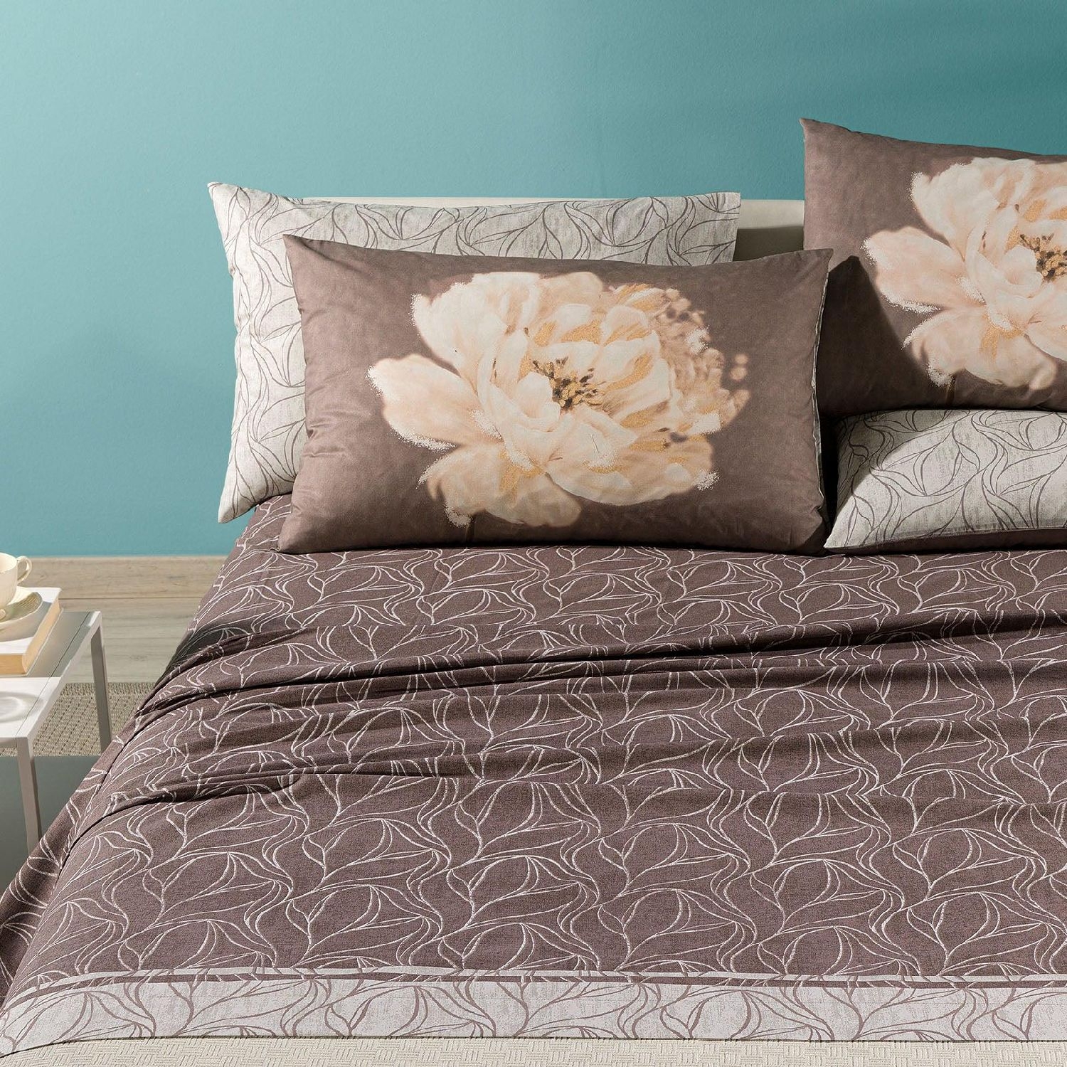 Completo lenzuola matrimoniale Caleffi art.Peony colore chocolat
