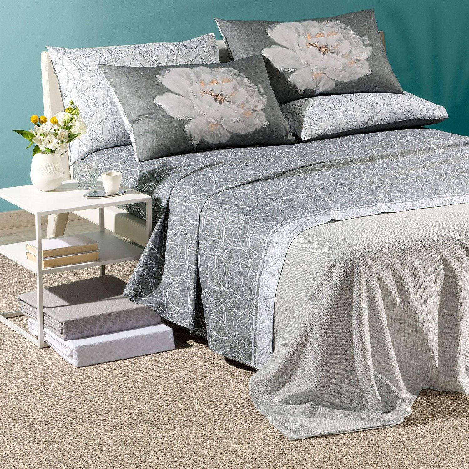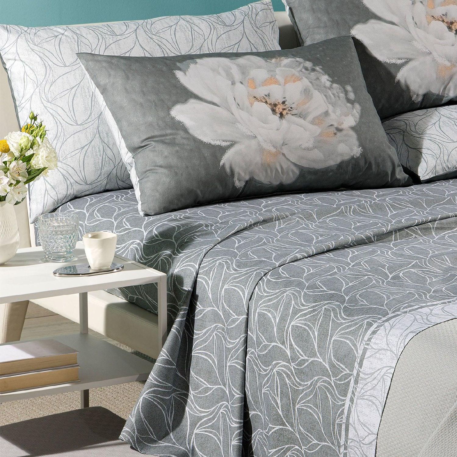 Completo lenzuola matrimoniale Caleffi art.Peony colore grigio