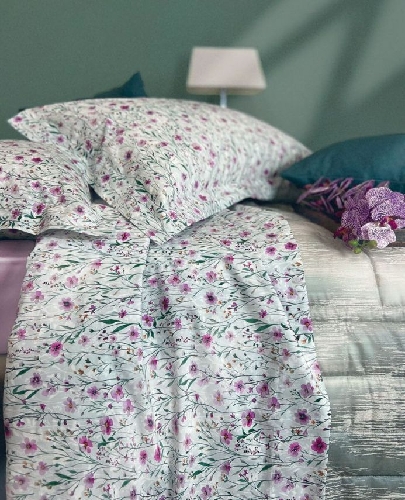 Completo lenzuola matrimoniale Svad Dondi 100% raso di cotone lenzuola sopra stampato all over art.Ninfa colore lilla