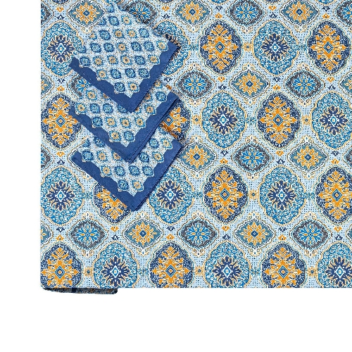 tovaglia con 12 tovaglioli stampata misura 140×240 produzione toscana made in ITALY