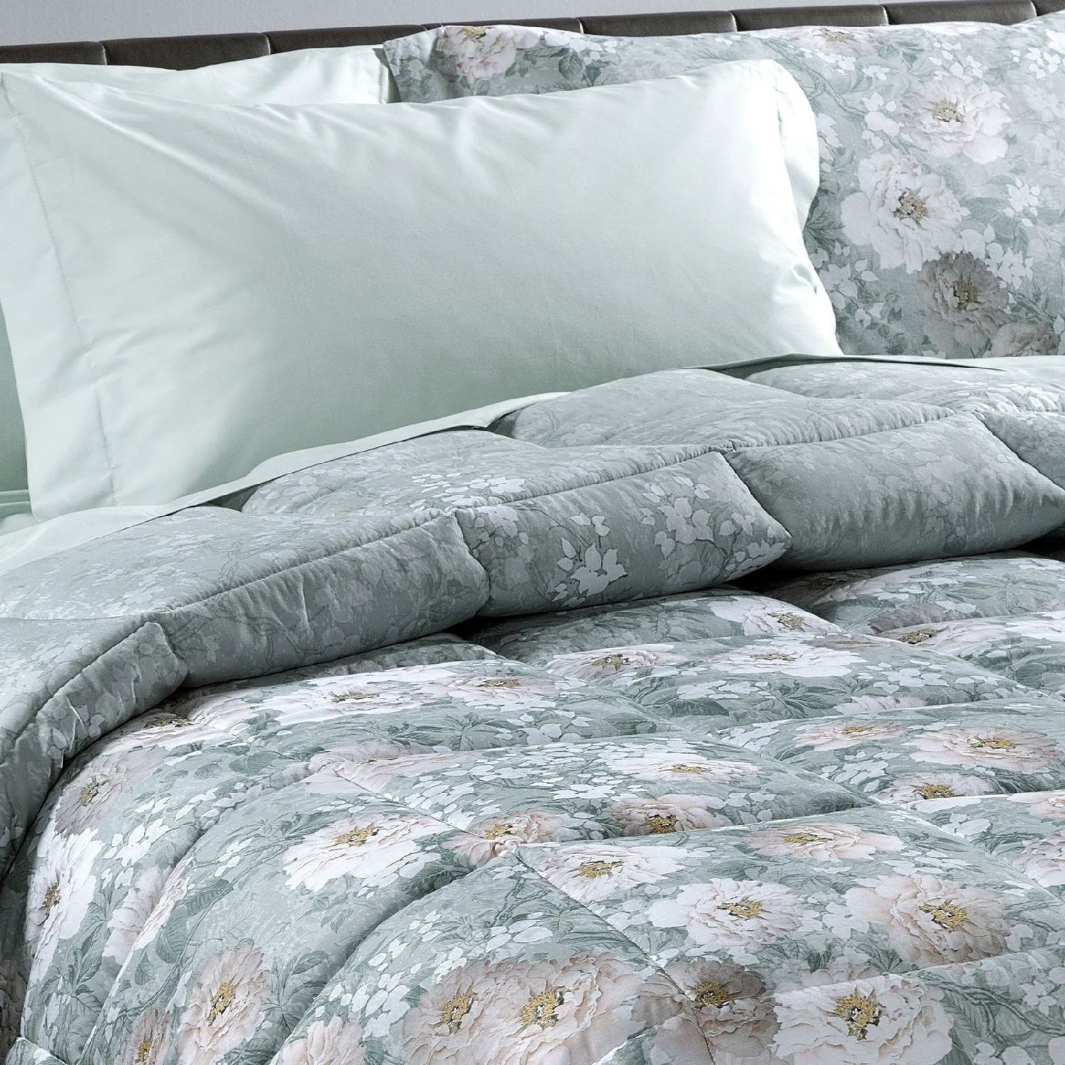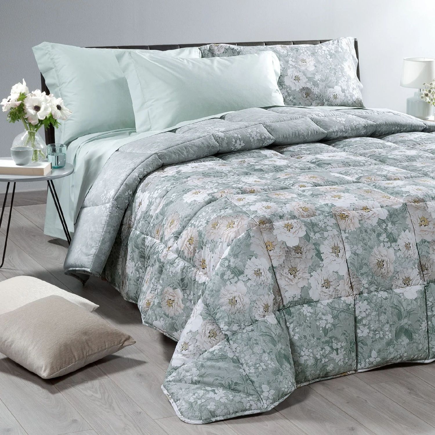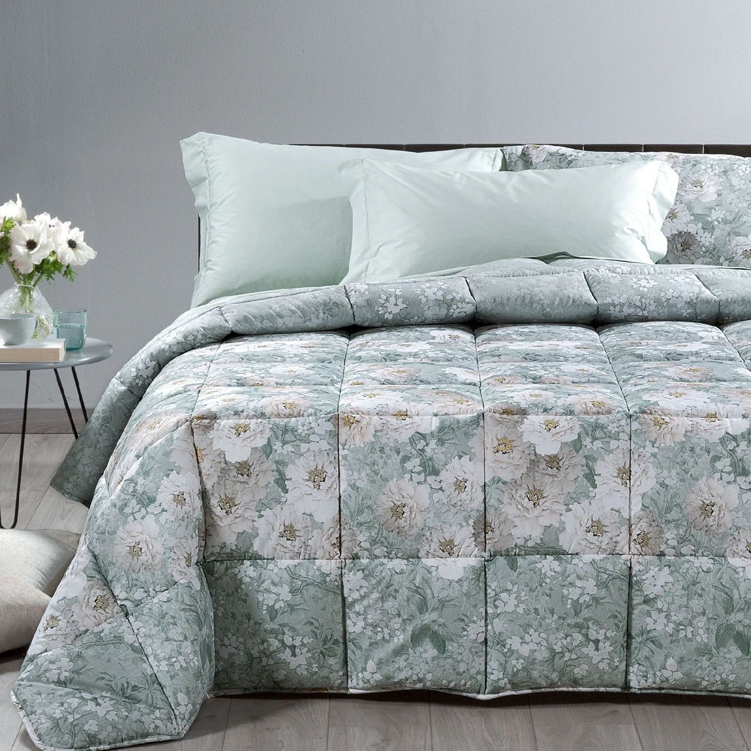 Trapunta invernale matrimoniale Caleffi art.Kyoto Flowers colore anice