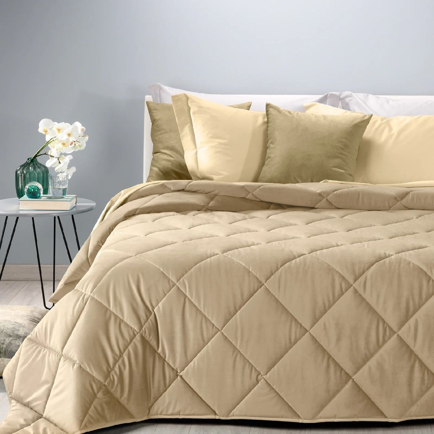 Trapunta matrimoniale invernale in microfibra di velluto Caleffi art.Velvet colore biscotto